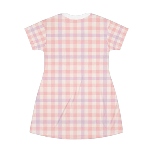 Chic Pastel Gingham T-Shirt Dress, Casual Summer Outfit, Relaxed Fit Dress, Everyday Wear, Perfect for Picnics, Brunch, and Gifts