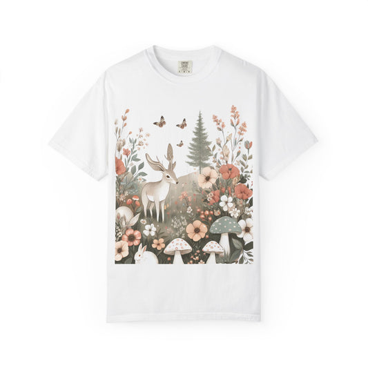 Whimsical Nature Cottagecore T-Shirt Floral Deer and Bunny Nature Tee Eco-Friendly Shirt Outdoor Lover Gift Vintage Spring/Summer Apparel