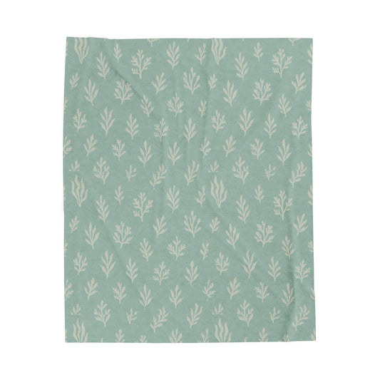 Velveteen Blanket Soft Throw for Home Decor Fall Christmas Housewarming Seafoam Green Seaweed Pattern Cozy Plush Bedding Decorative