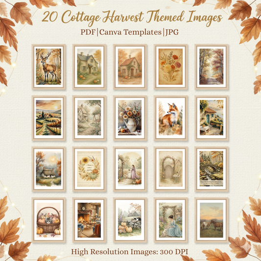 Cottage Harvest Fall Wall Art Bundle Printable, Watercolour, Multi-Size PDF, JPG, Canva Template