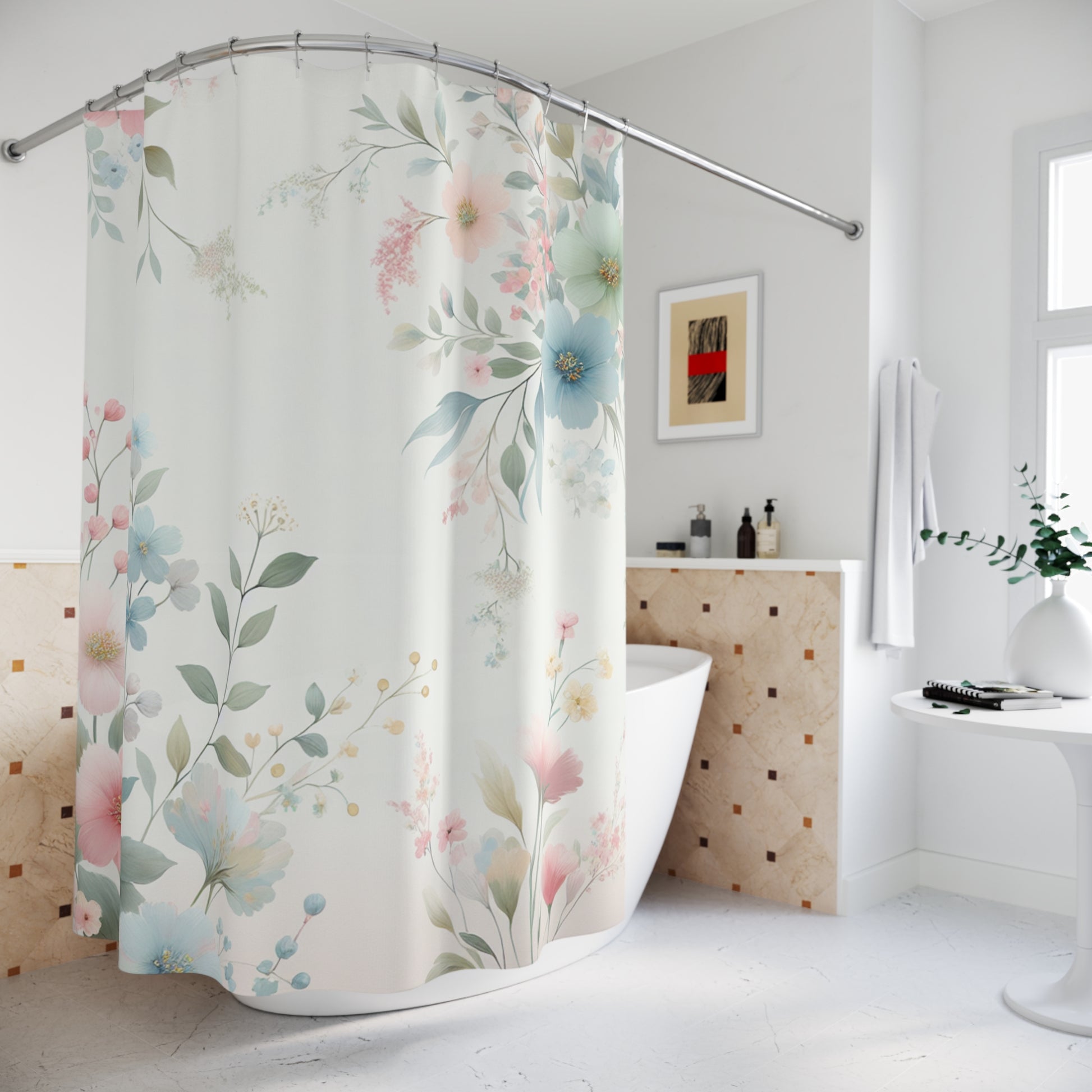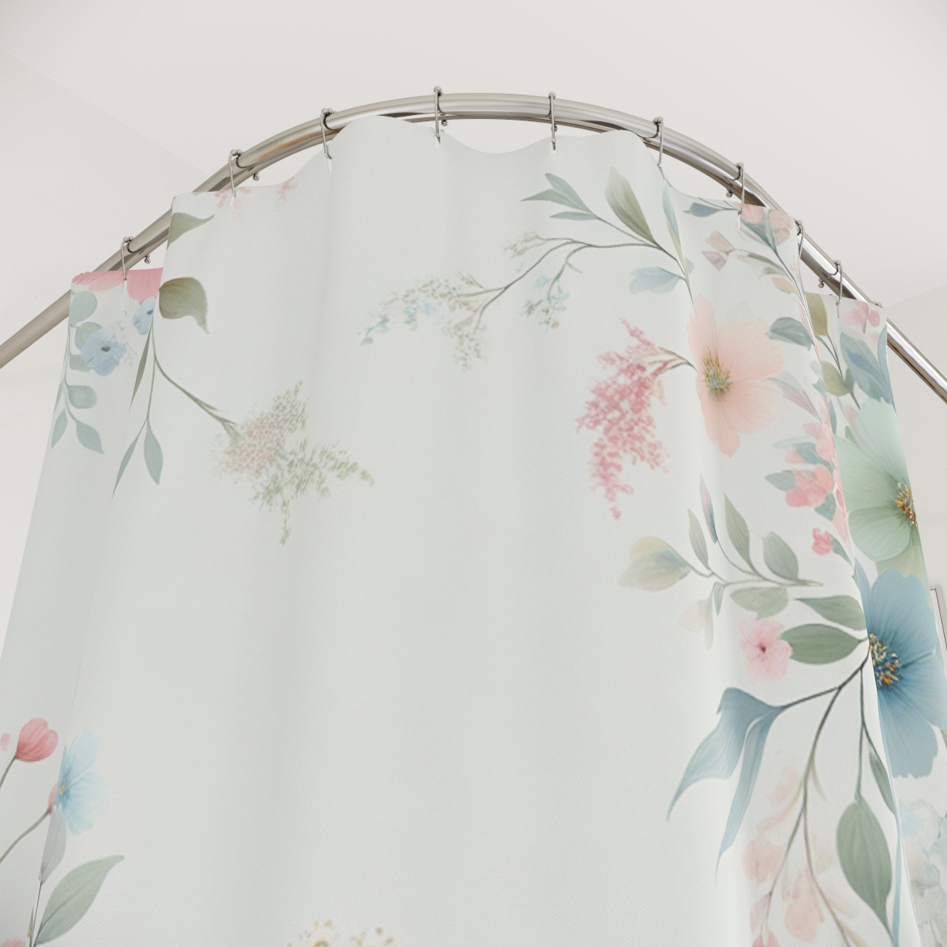 Blissful Floral Shower Curtain - Elegant Botanical Design for a Serene Bathroom
