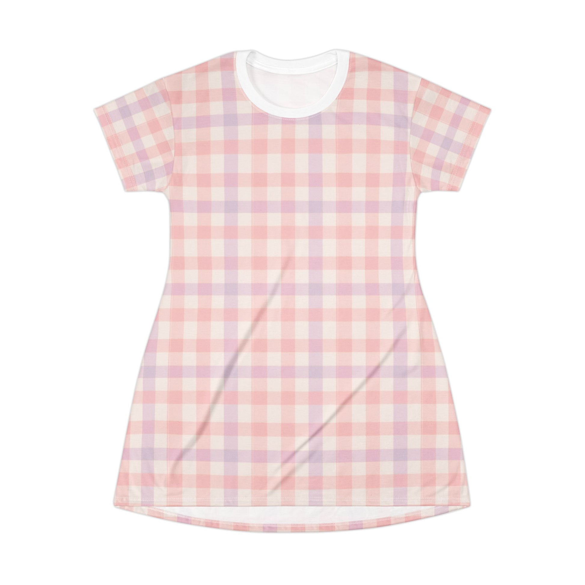 Chic Pastel Gingham T-Shirt Dress, Casual Summer Outfit, Relaxed Fit Dress, Everyday Wear, Perfect for Picnics, Brunch, and Gifts