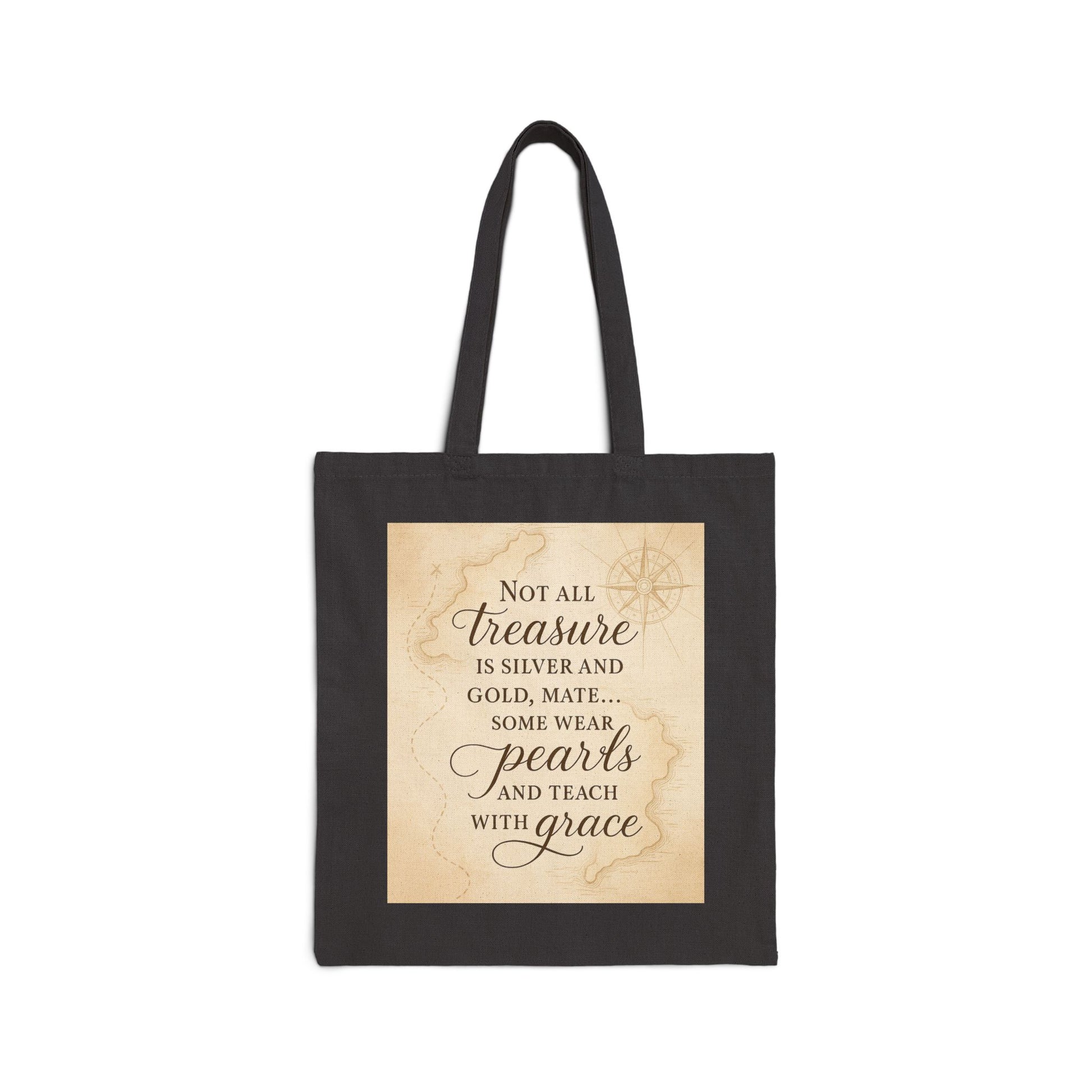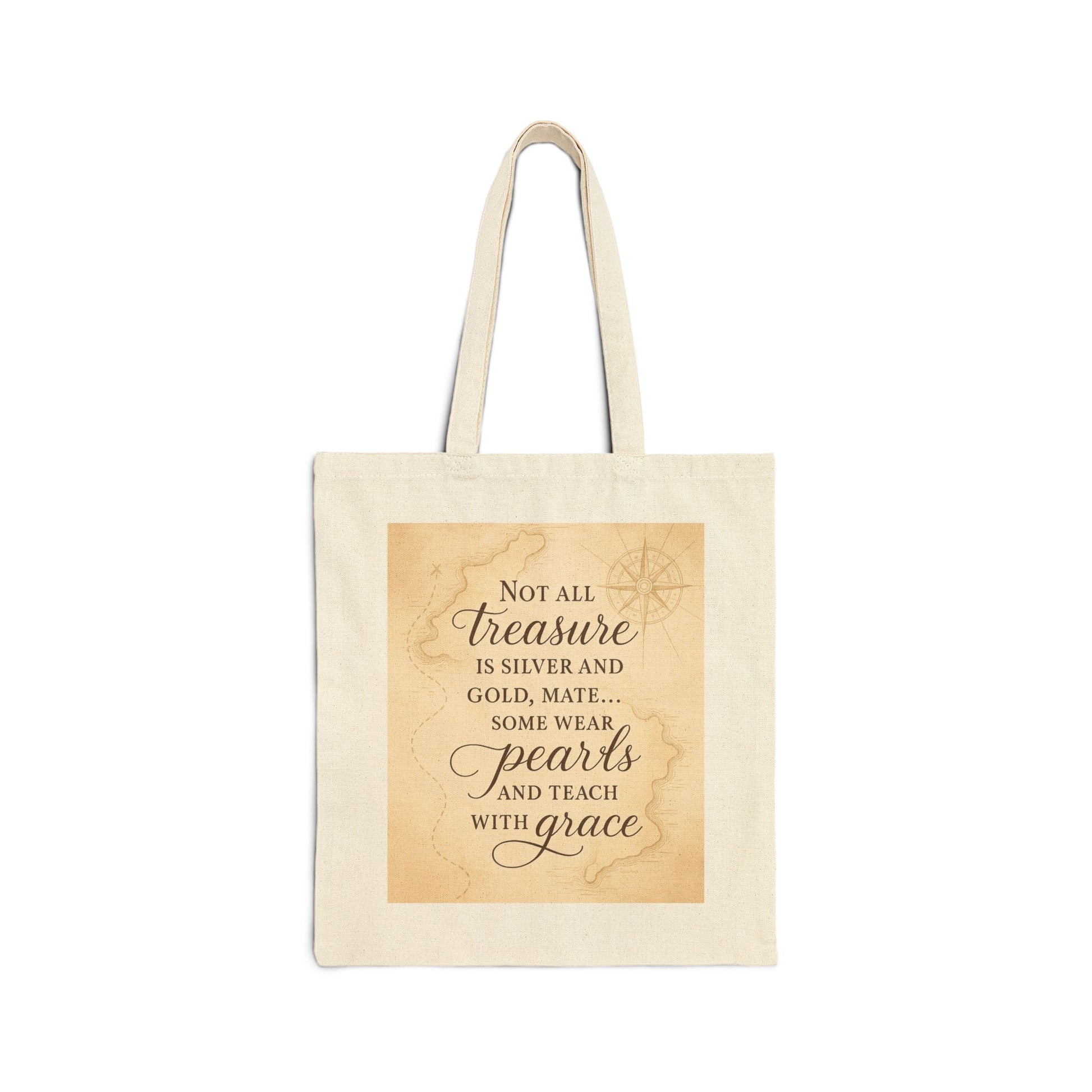 Cotton Canvas Tote Bag for Teachers - Not All Treasure is Silver and Gold, Beach & Travel Essential, Pirate Theme, Teacher Gift, Vintage Map