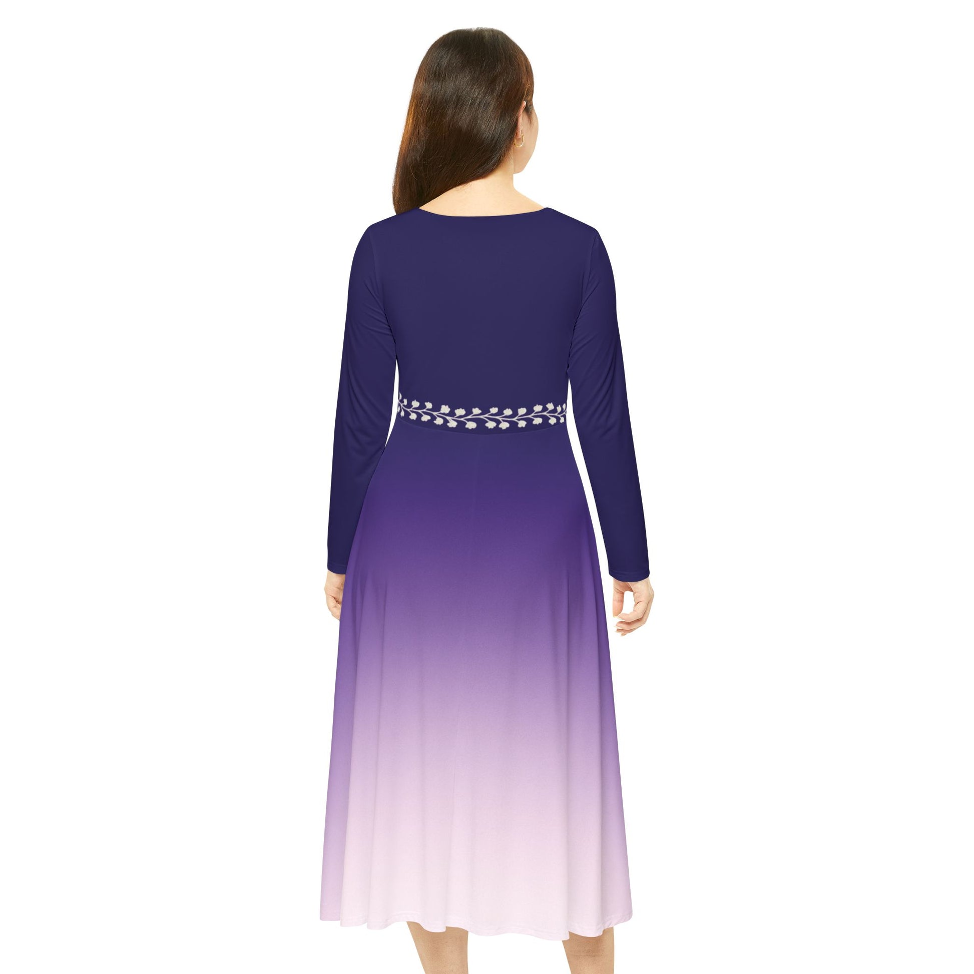 Dance Dress Tanzanite Navy Blue Purple Ombre Formal Casual Elegant Fall Winter Midi Modest Long Sleeve White Vine Detail Women's Plus Option