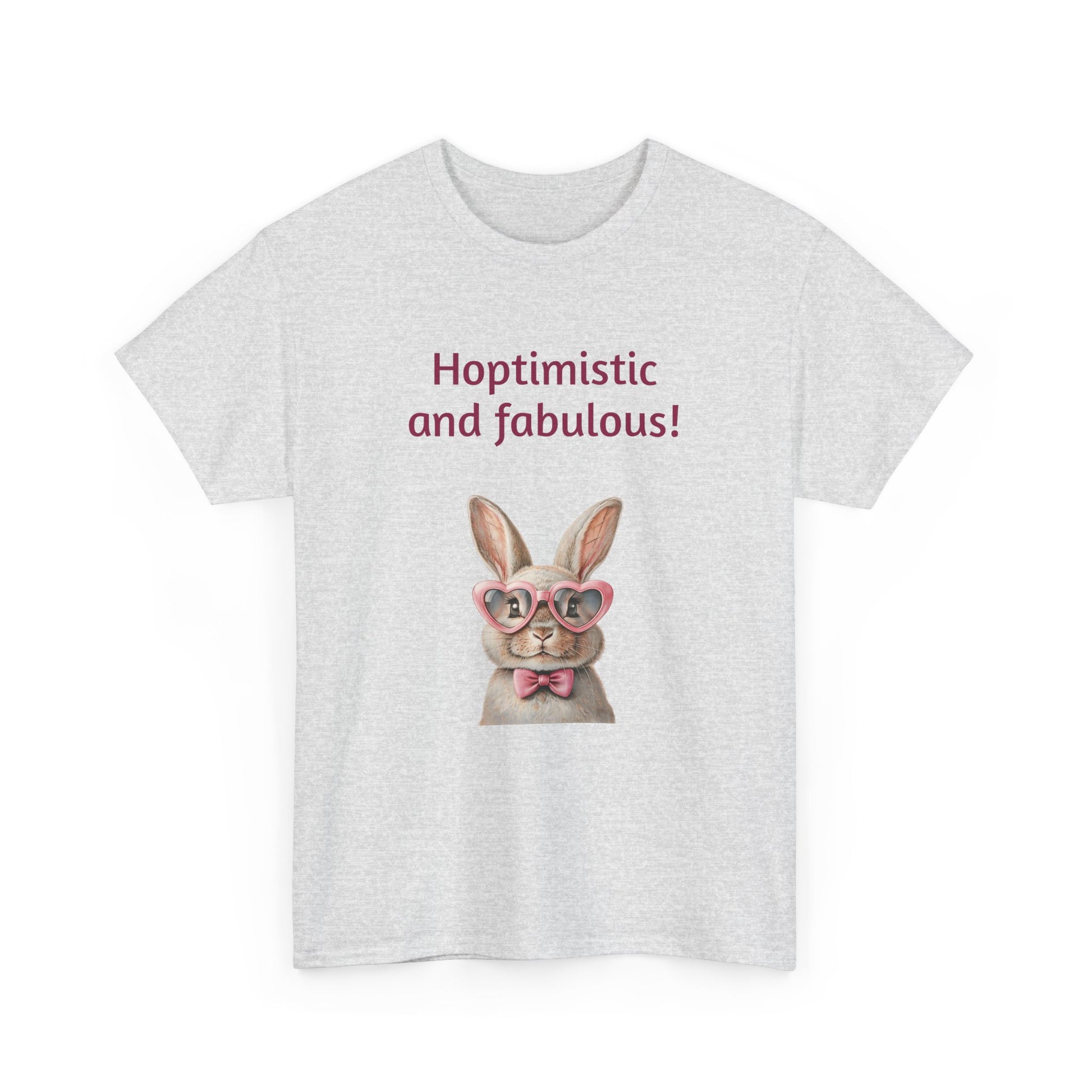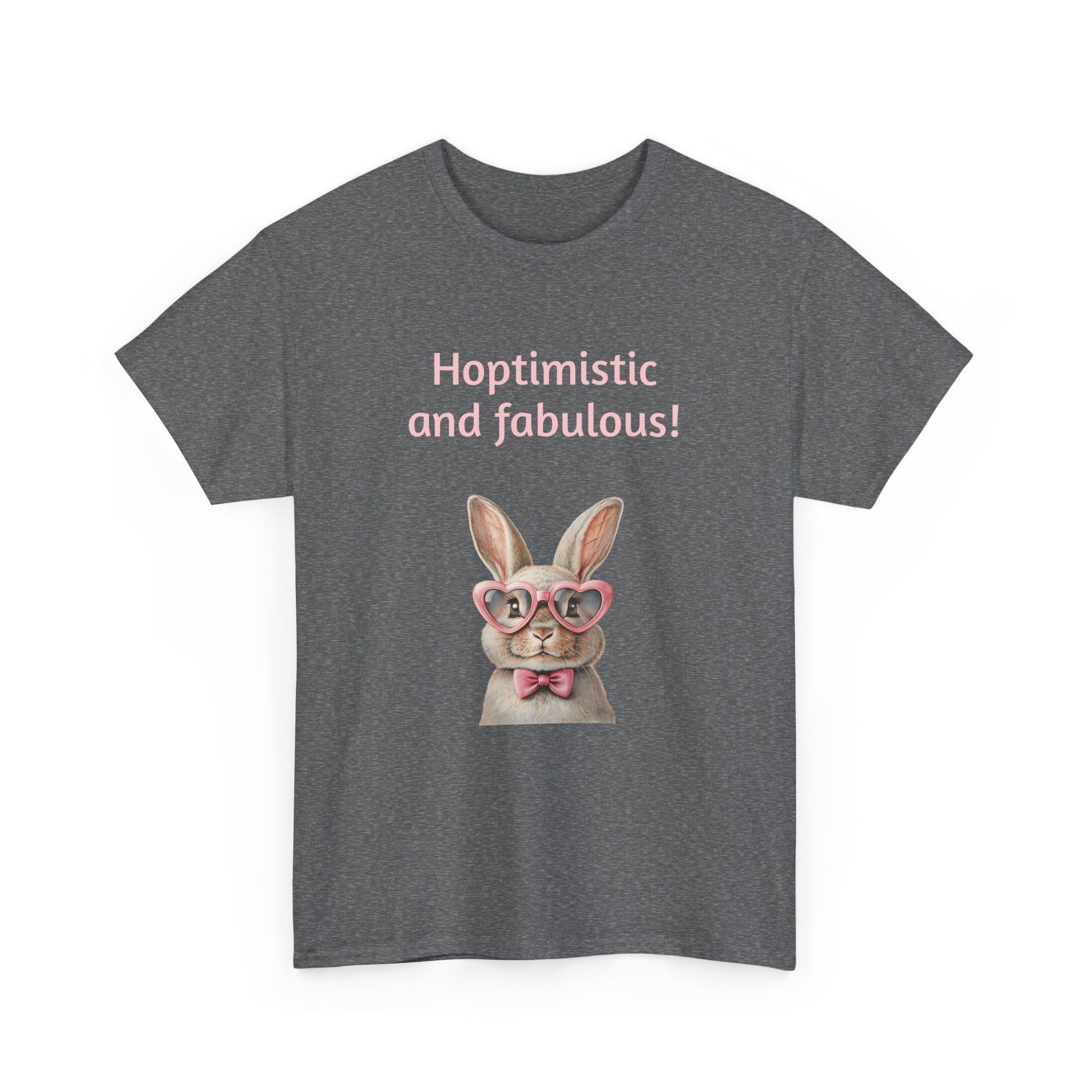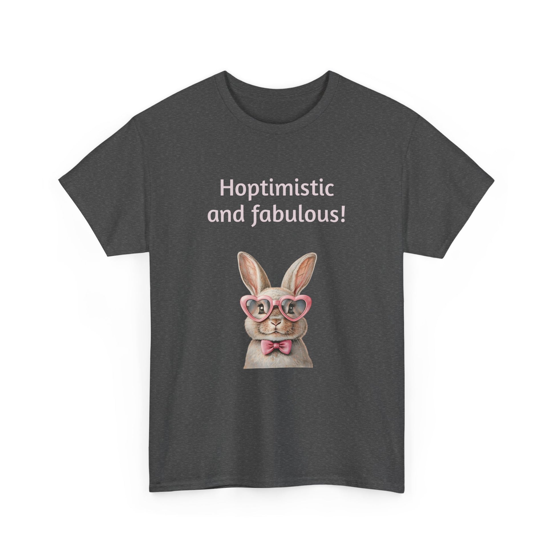 Embrace your unique style with this delightful Unisex Heavy Cotton Tee! Featuring a whimsical design that reads "Hoptimistic and fabulous!" adorned with a charming bunny in glasses, this shirt is perfect for brightening your day. The lighthearted and cheerful vibe makes it an ideal addition to your casual wardrobe, perfect for outings with friends, family gatherings, or just lounging at home. It’s especially fitting for spring celebrations, Easter festivities, or any day you want to spread positivity.