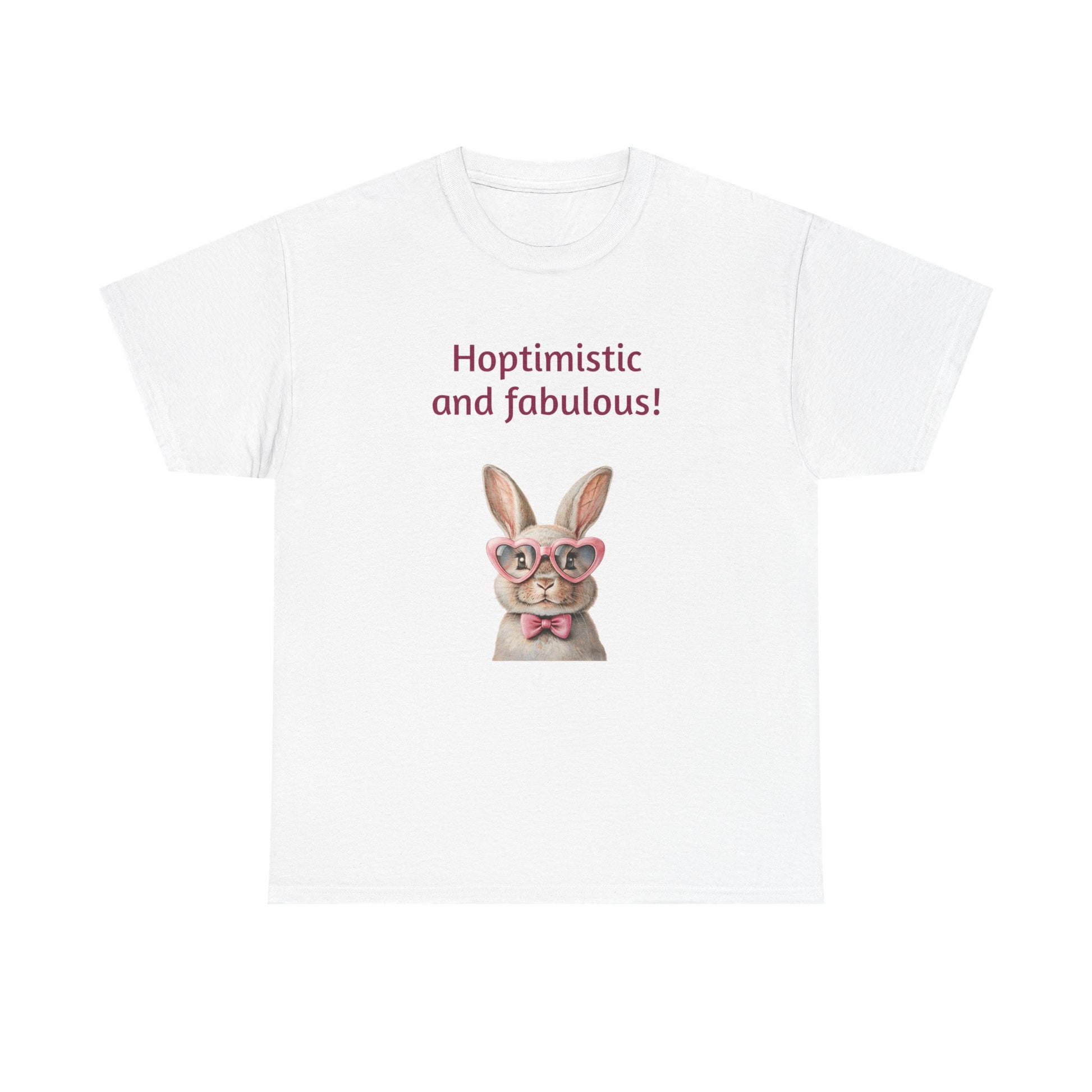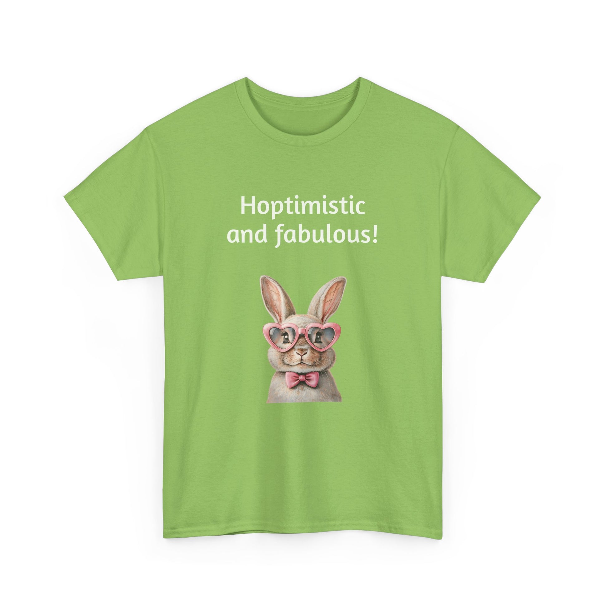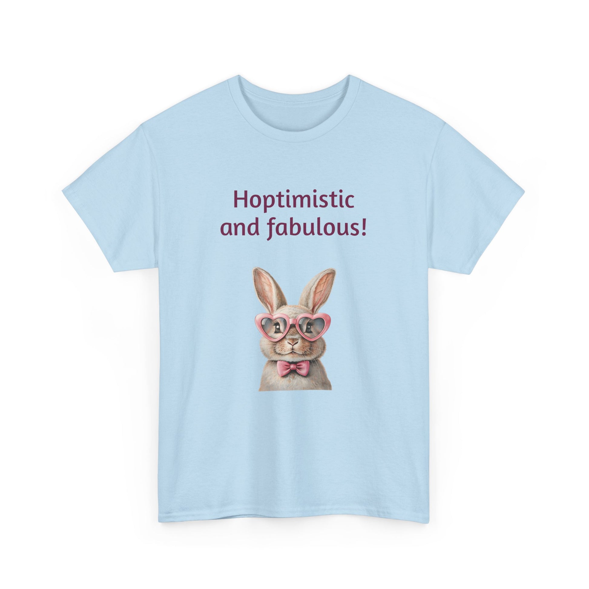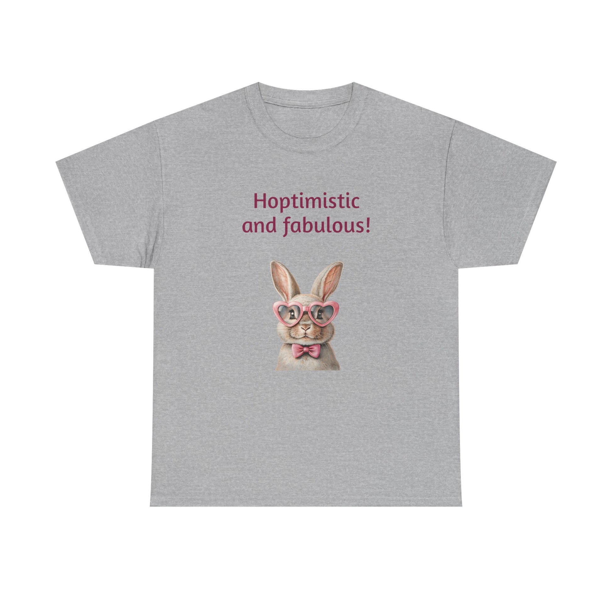 Embrace your unique style with this delightful Unisex Heavy Cotton Tee! Featuring a whimsical design that reads "Hoptimistic and fabulous!" adorned with a charming bunny in glasses, this shirt is perfect for brightening your day. The lighthearted and cheerful vibe makes it an ideal addition to your casual wardrobe, perfect for outings with friends, family gatherings, or just lounging at home. It’s especially fitting for spring celebrations, Easter festivities, or any day you want to spread positivity.