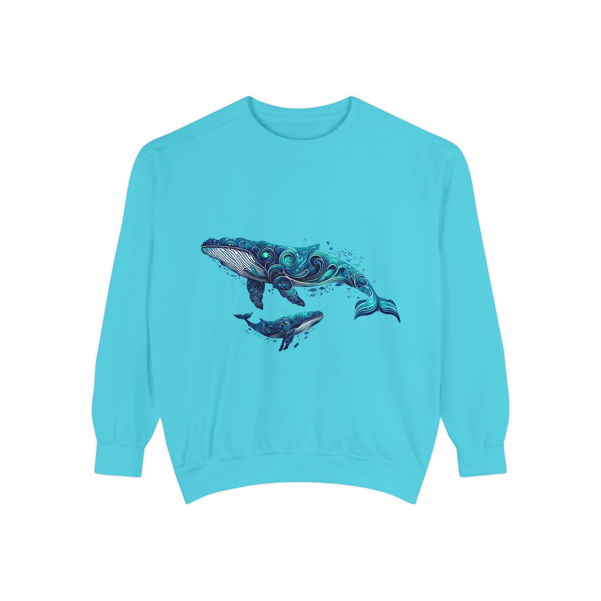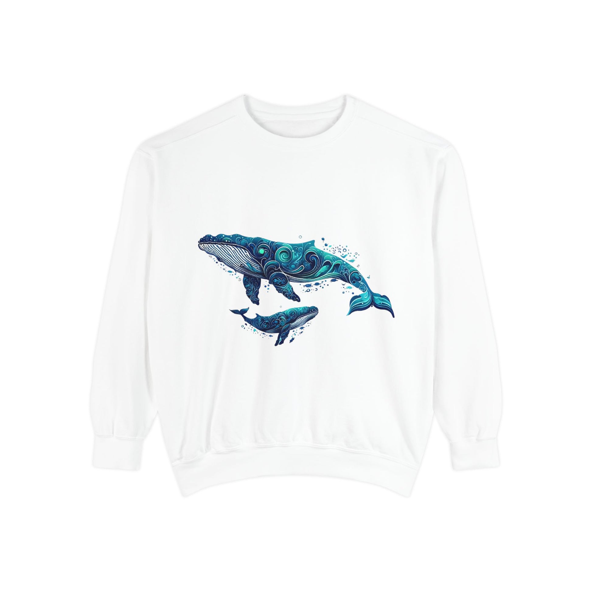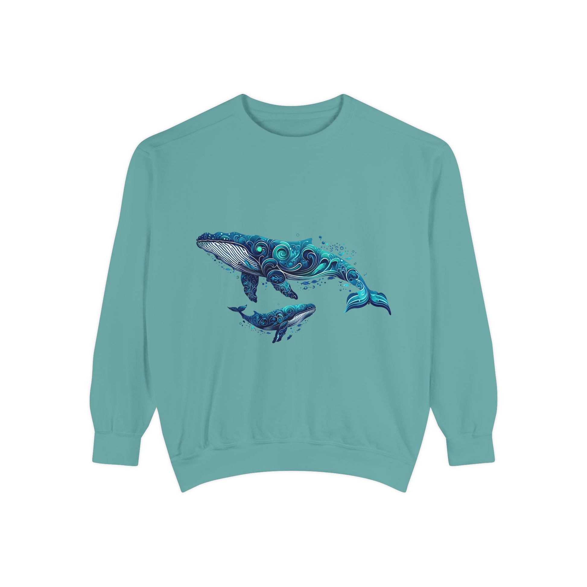 Introducing our cozy and stylish Unisex Garment-Dyed Sweatshirt, an ideal piece for anyone looking to blend comfort with a touch of artistic expression. This sweatshirt emits a relaxed and inviting vibe, perfect for casual outings or cozy nights in. With its luxurious feel and unique design featuring majestic whales, it resonates with nature lovers and art enthusiasts alike. This versatile garment is perfect for everyday wear and makes a thoughtful gift for birthdays, Earth Day, or simply to celebrate your loved ones' passions.